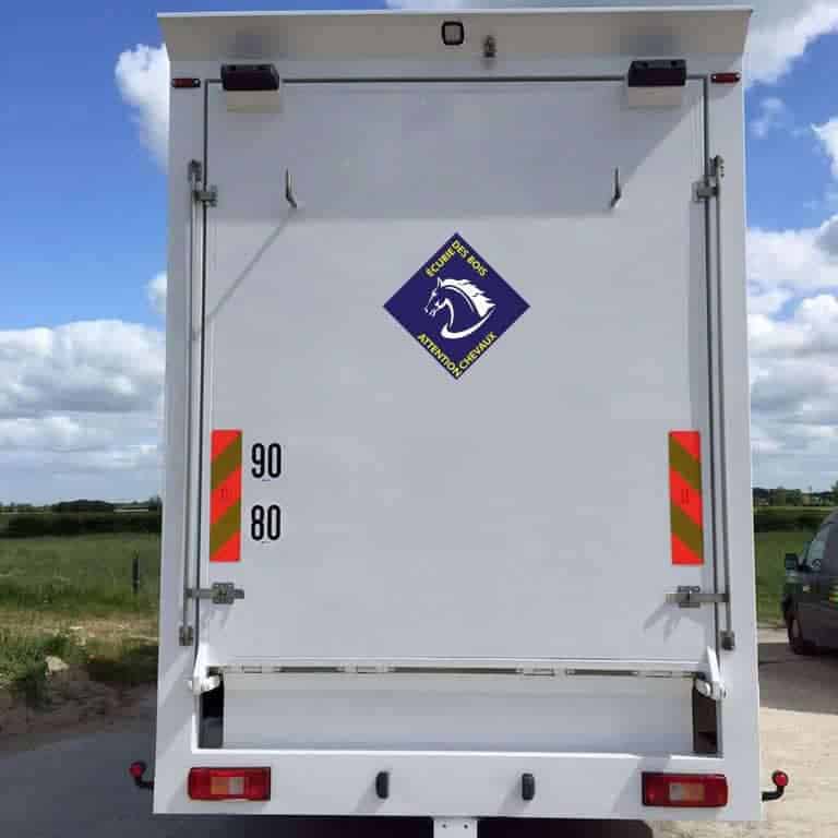 Personnalisé votre stickers attention chevaux avec votre nom ou votre nom d’écurie. Le stickers “attention chevaux” est obligatoire pour le transport d’animaux vivants. Découpé à la forme selon le modèle choisi.