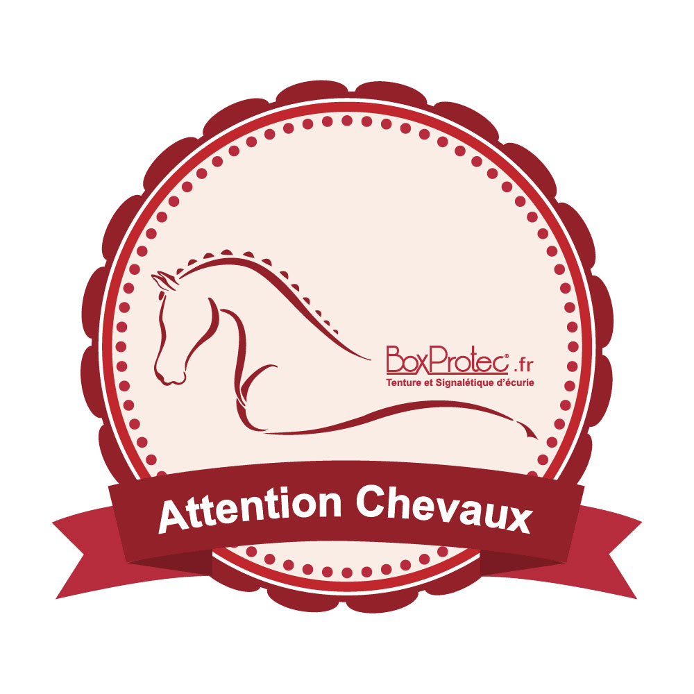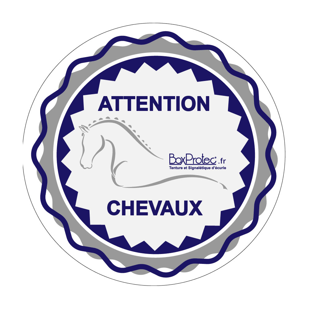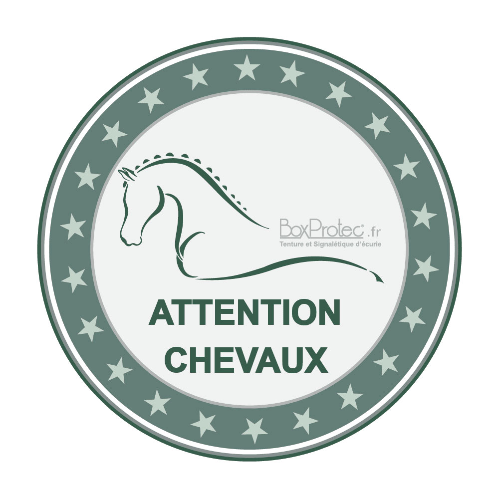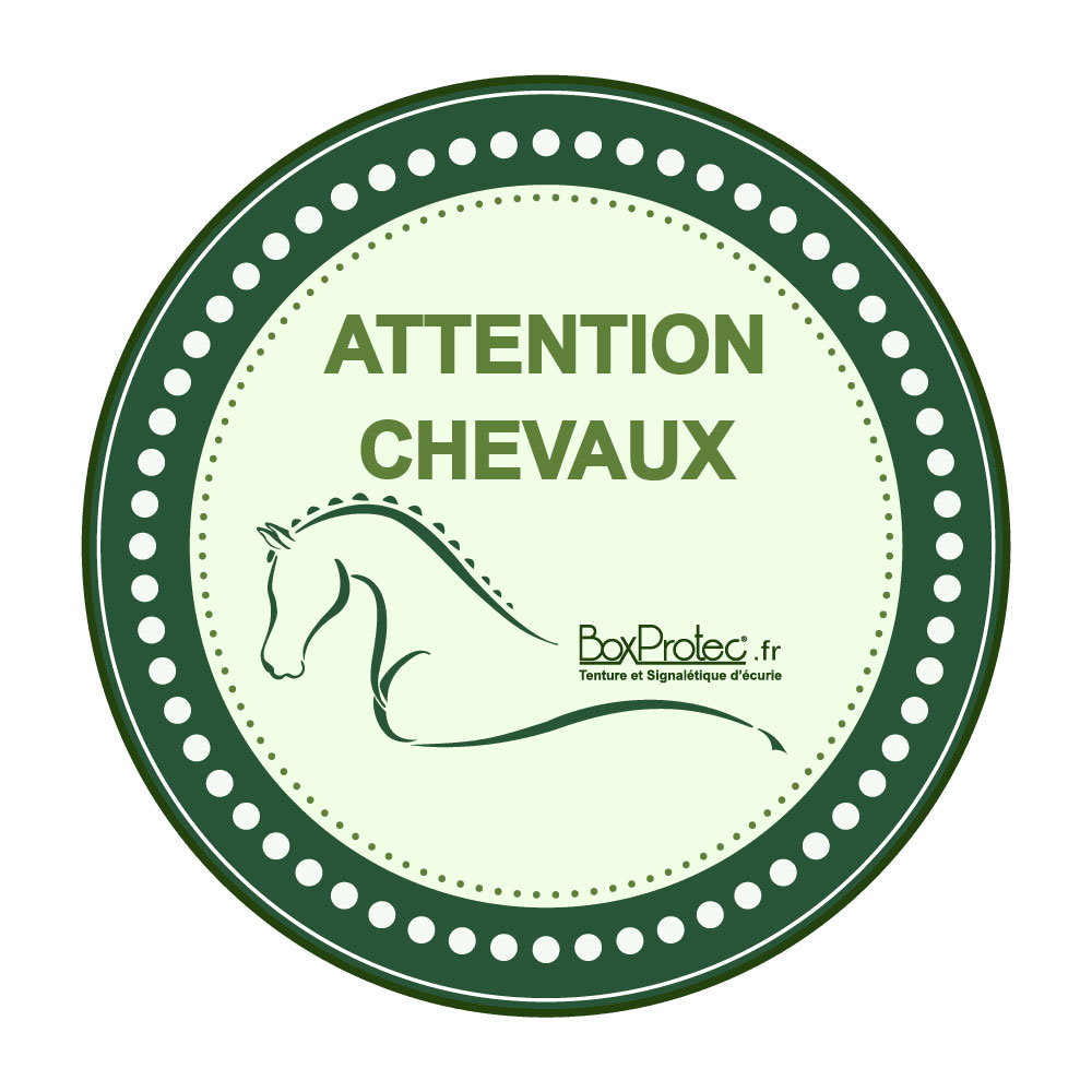 Utilisez cet autocollant rond attention chevaux qui existe en différents modèles et tailles