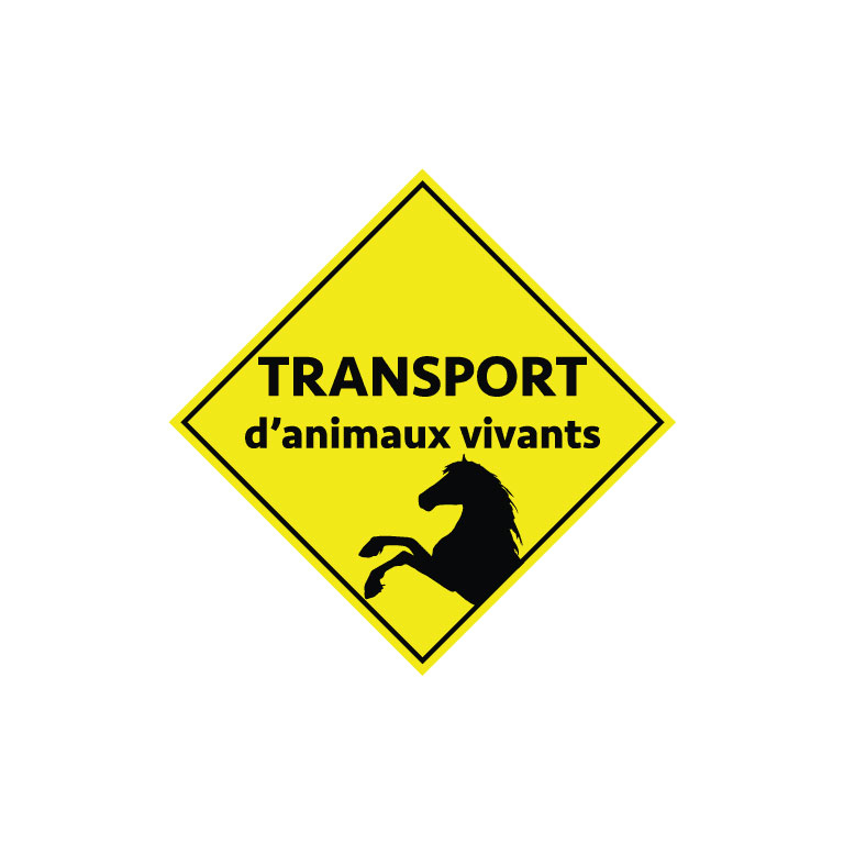 Le stickers “transport d’animaux” est obligatoire pour le transport d’animaux vivants. Il est découpé a la forme en losange. Il doit être coller sur le véhicule de transport de manière à être visible de tous. Idéal pour une pose sur camion et autre véhicule de transport d’animaux. Se pose facilement et rapidement sur les surfaces plates, non granuleuses.