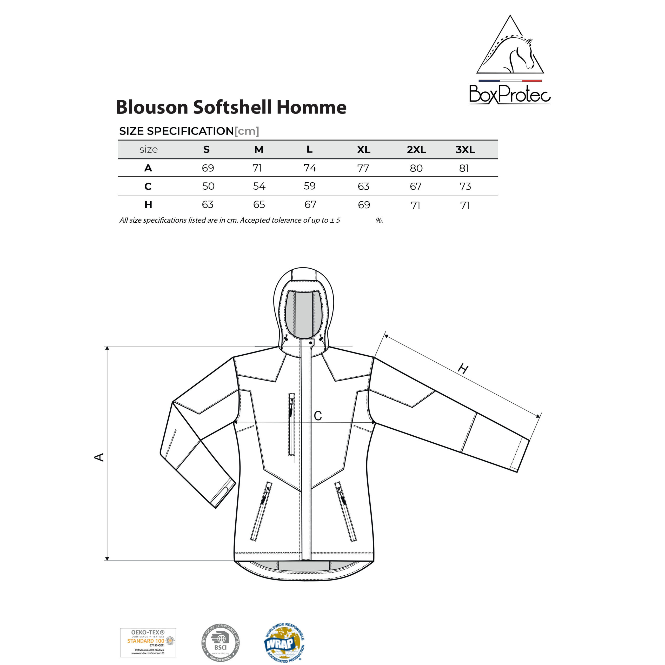 - Softshell à 3 couches avec membrane pour une protection renforcée.