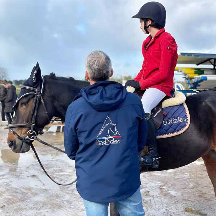 Découvrez notre blouson d’équitation personnalisable, : avec un poids de 280 g/m², ce veste softshell est fabriqué à partir de polyester 100 % avec une finition NANOtex® qui empêche la pénétration de l’eau. Sa membrane respirante et sa micro polaire perforée assurent une imperméabilité de 5 000 mm et une perméabilité à l’air de 600 g/m²/24 heures, offrant une protection optimale contre les intempéries.