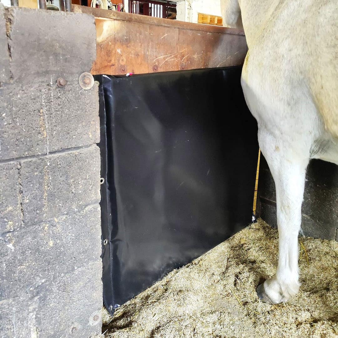 Ce matelas de protection peut être installé sur un mur de box, une porte de box, ou même à l’intérieur d’un camion ou d’un van. Il est particulièrement idéal pour les chevaux qui tapent, lors d’interventions vétérinaires, pour les poulinages, et autres situations nécessitant une protection particulière.