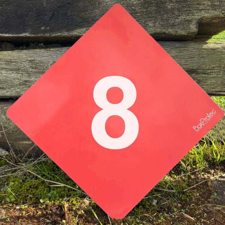 Les panneaux mesurent 29 x 29 cm et sont en Aluminium Composite. Nos panneaux de numéros et lettres d’obstacles de cross orange résisteront à toutes les intempéries, elles ne rouilleront pas et résisteront aux chocs.