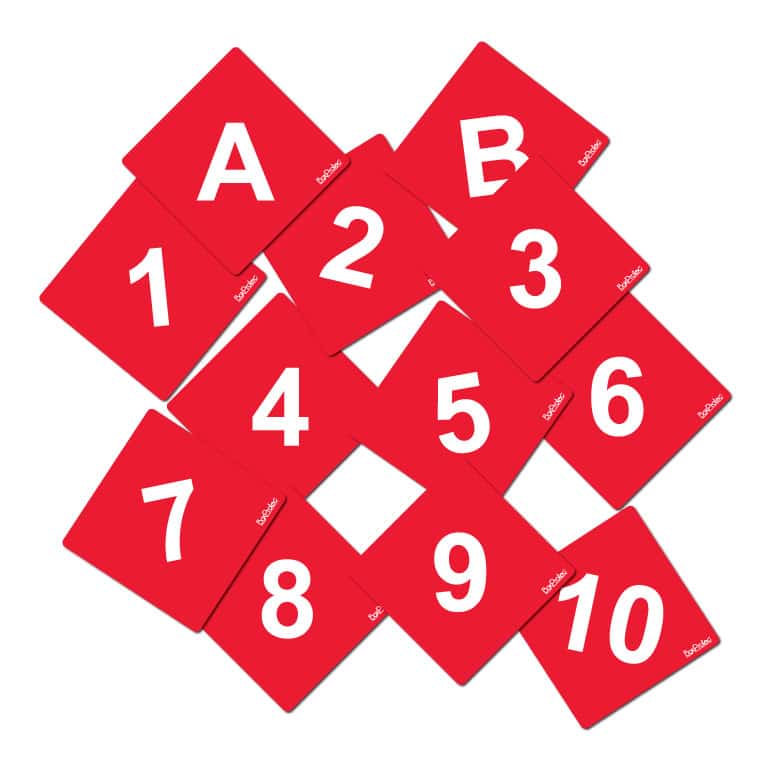Nos panneaux d’obstacles avec le fond orange sont simples d’entretien. Composer des numéros de 1 à 10 ainsi que les lettres A et B. De plus en options sont disponibles les numéros 11 et 12 et les lettres C et D.