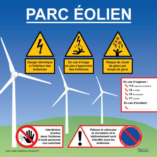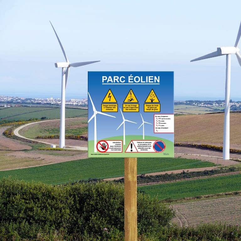 Panneau de sécurité pour les parcs d’éoliennes afin de sécuriser le parc éolien.