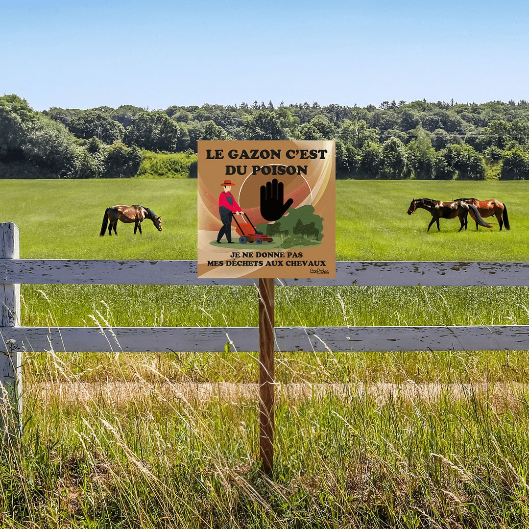 Protégez vos chevaux avec notre panneau “pas de gazon aux chevaux” d’avertissement clair et concis.