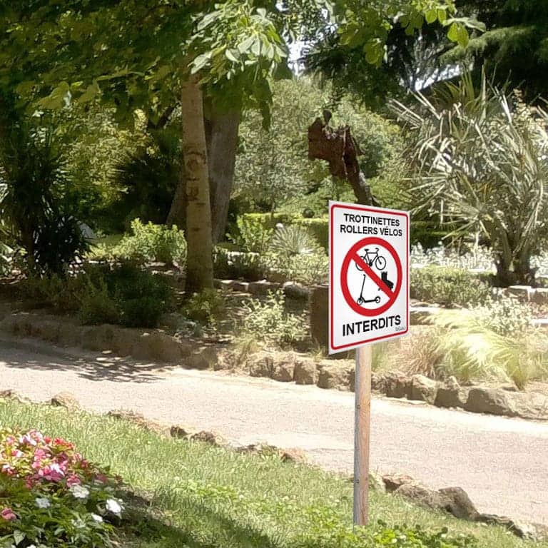 Panneau trottinettes, rollers et vélos interdits.