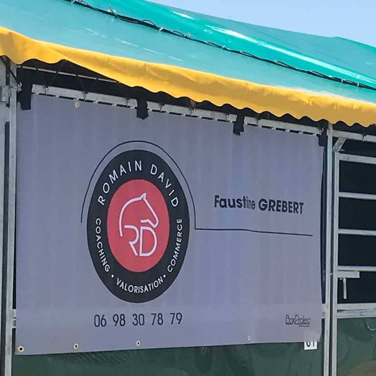 Les tentures micro-perforées sont imprimées dans nos ateliers en France. C’est de plus un support de communication idéal pour les cavaliers et écuries de compétition.