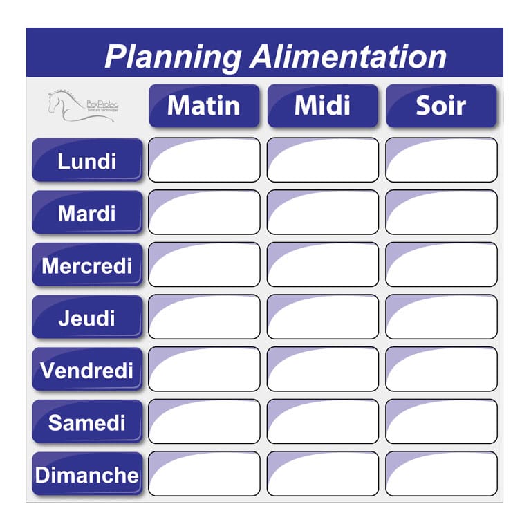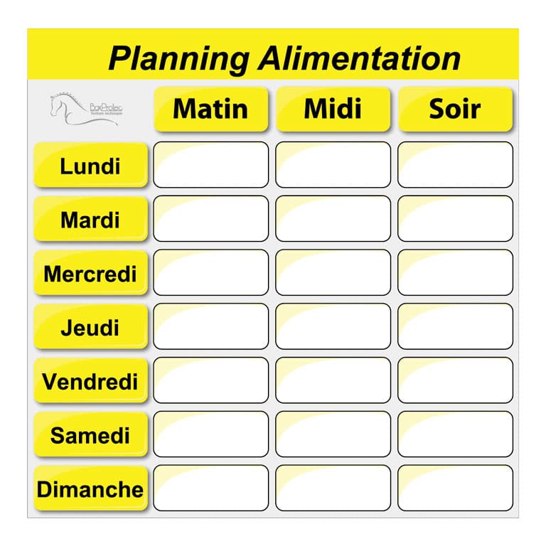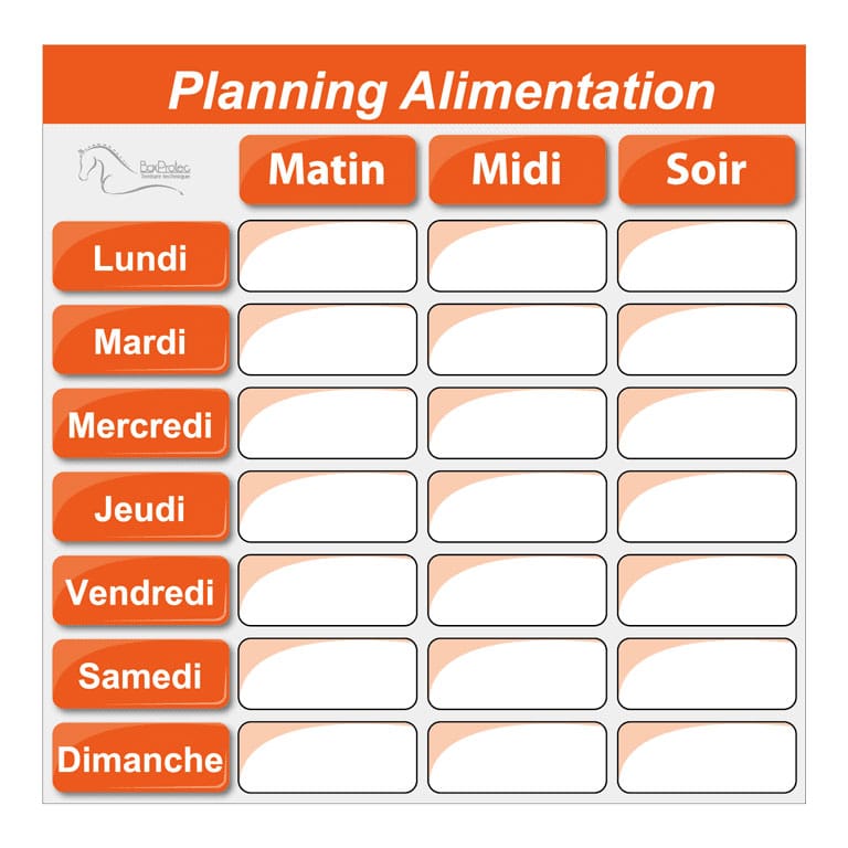 Mettez de l’ordre dans vos distributions de repas grâce à notre planning d’alimentation effaçable spécialement conçu pour les écuries !