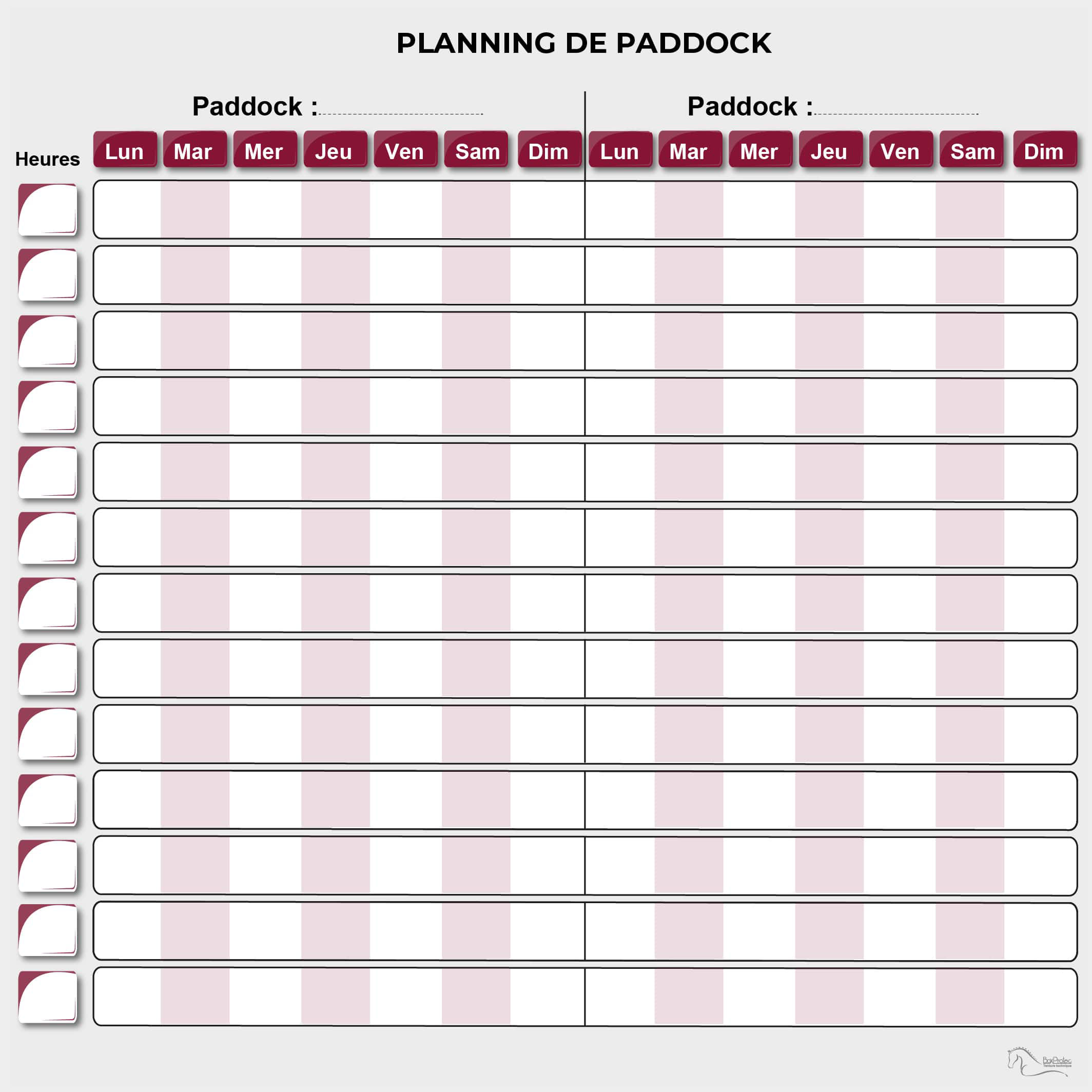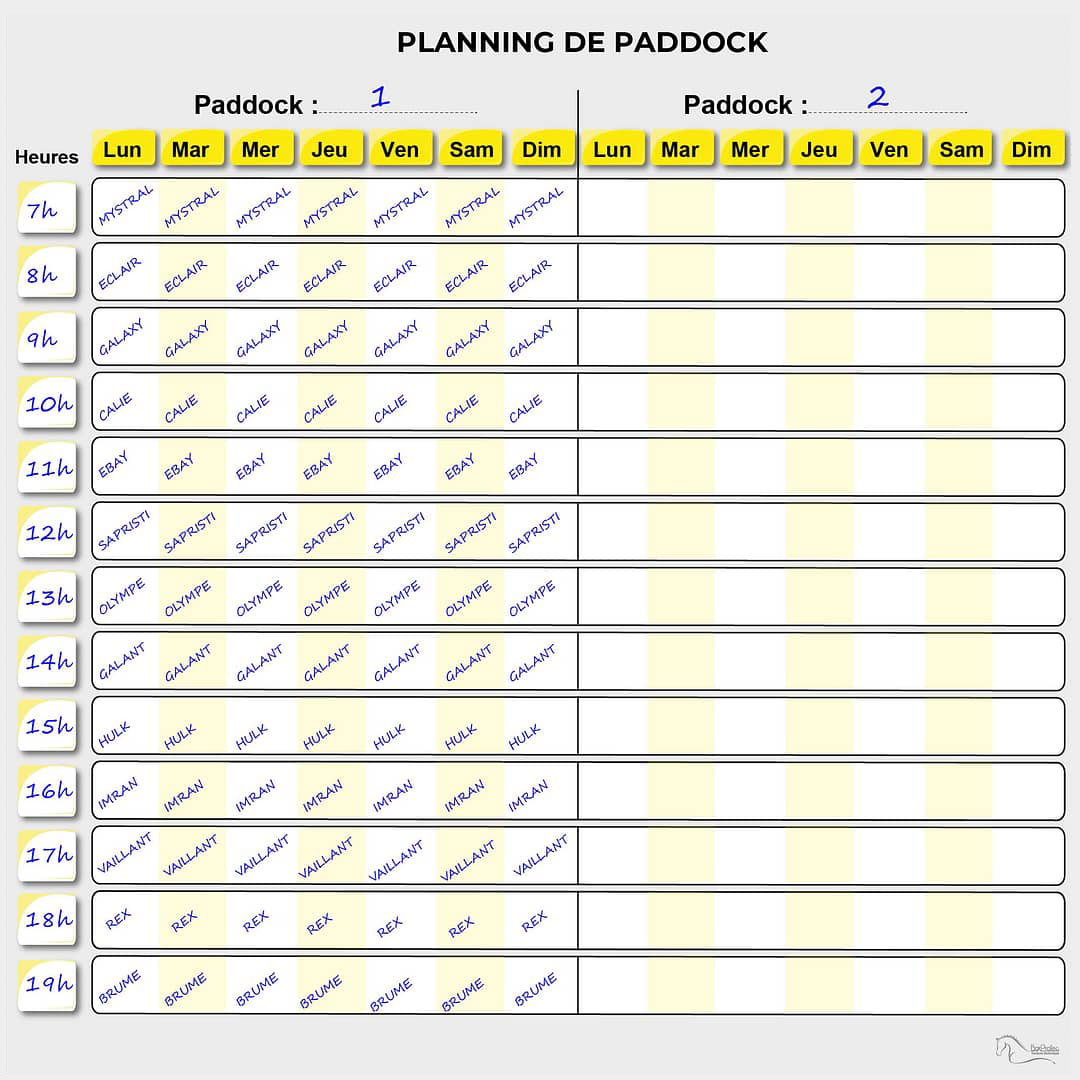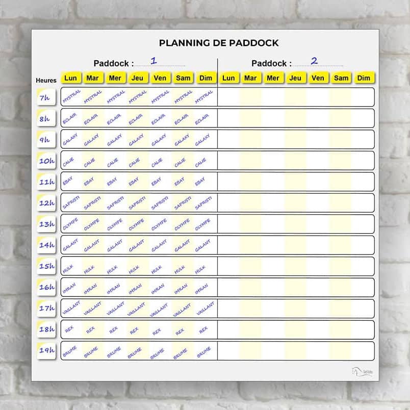 Planning de paddock et pâtures effaçable pour chevaux spécial pour la gestion de vos pâturages.