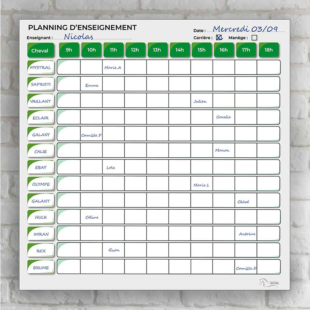 Planning d’enseignement d’équitation effaçable pour chevaux