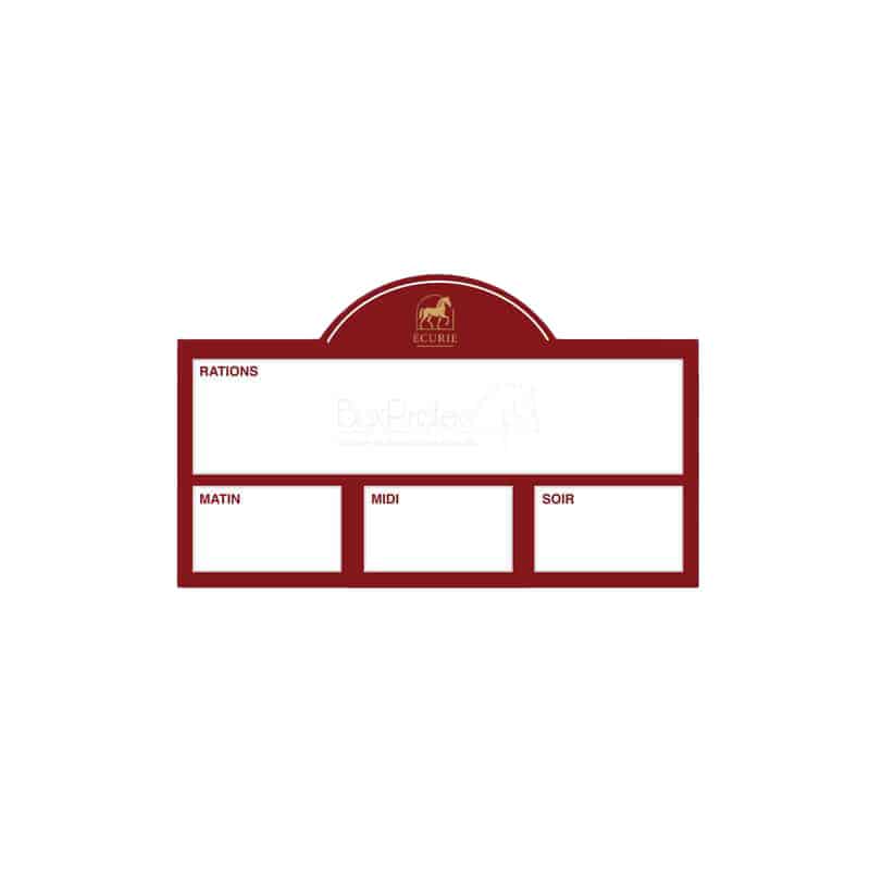 Grâce à son revêtement effaçable à sec, cette plaque est réutilisable à l’infini. Elle vous permet de noter les rations quotidiennes de vos chevaux, matin, midi et soir, ainsi que des observations spécifiques (allergies, traitements, etc.) en un clin d’œil.