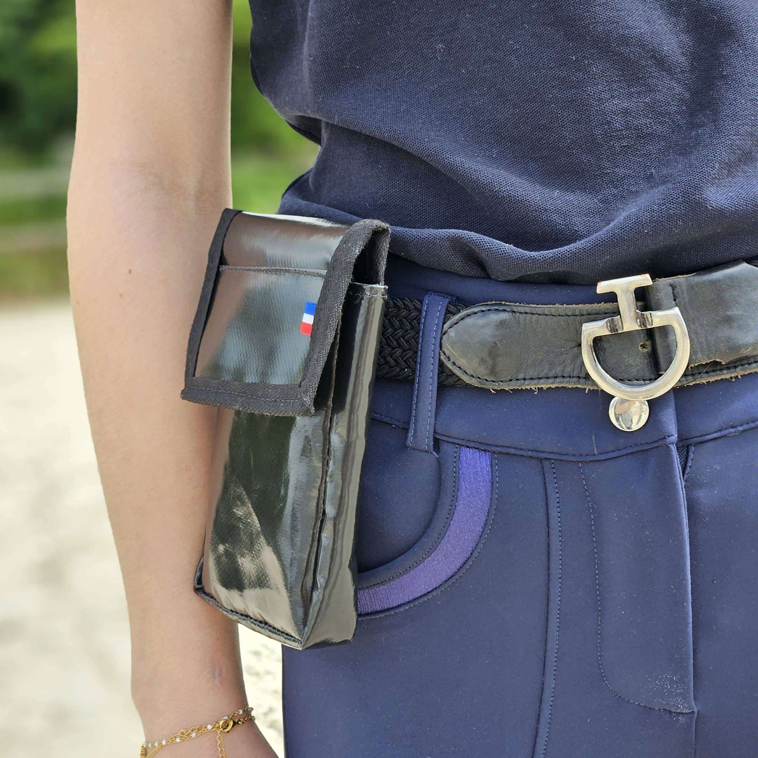 À l’intérieur, vous trouverez deux pochettes spacieuses qui vous permettront de stocker les confiserie pour votre cheval lors de vos sorties, de ranger votre porte-monnaie et même d’y glisser vos effets personnels importants comme votre téléphone portable.