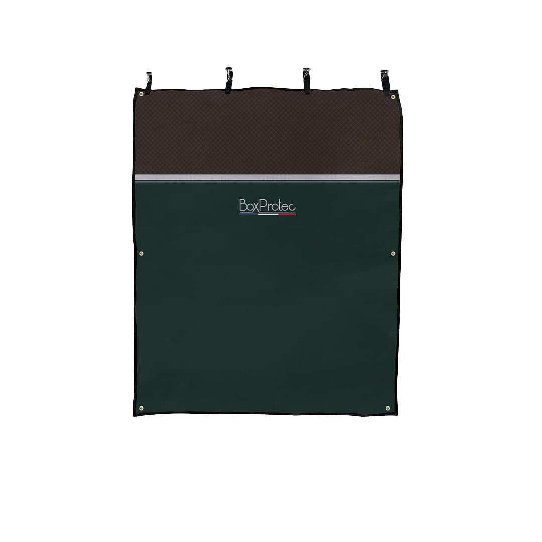 Découvrez la tenture de box grand format Collection Camille. Conçue pour s’adapter parfaitement aux grilles de box démontables et offrir un véritable cocon protecteur à votre cheval. Avec ses dimensions généreuses (150 x 180 cm), elle recouvre totalement le box, limitant les courants d’air tout en laissant circuler l’air.